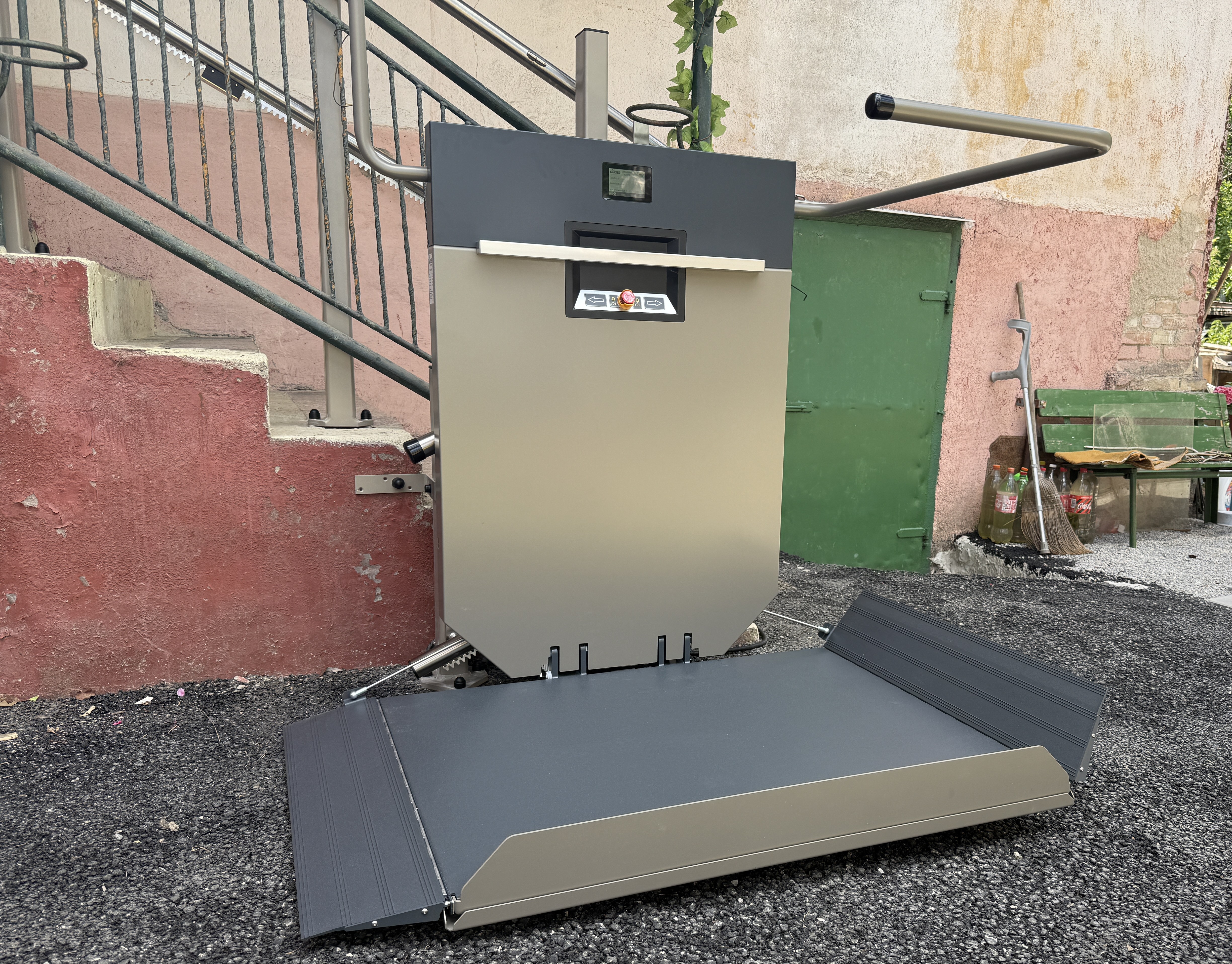 Šikmá plošina GTL E je určená práve na takéto situácie. Tento typ zariadenia umožňuje osobe na invalidnom vozíku bezpečne a automaticky prekonať schodiskovú bariéru pri vchode do domu bez potreby zdvíhania alebo pomoci iných osôb. Plošina sa pripevní k bočnej stene schodiska a pri výjazde sa na ňu nasadí vozík. Ovládanie je jednoduché a intuitívne, často s možnosťou ovládania z plošiny či diaľkovým ovládaním. GTL E je navrhnutá tak, aby poskytla stabilný a hladký prejazd bez otrasov, čo je kľúčové pre komfort a bezpečnosť užívateľa.